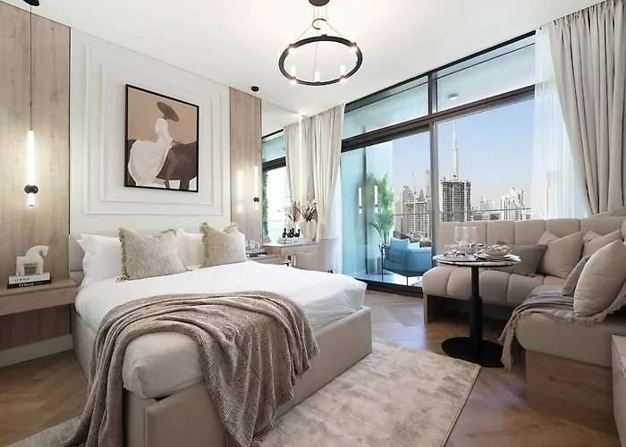 To enjoy your vacation in Dubai, stay at Designer 1Br In Peninsula W Balcony And Pool Apartment Dubai, which is 2.1 km from the gargantuan Dubai Aquarium & Underwater Zoo and about a 10-minute ride from the dancing Dubai Fountain.
